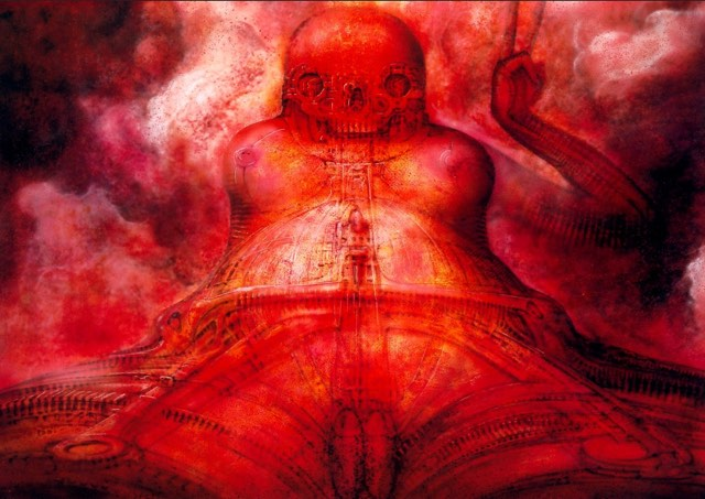 Celtic Frost is entertained by this trinity at least on a subconscious level. The intro to their debut LP Morbid Tales, aptly titled Human, consists of bestial screams, distorted by audio technology. On their comeback album Monotheist there is a song titled A Dying God Coming into Human Flesh. On To Mega Therion, as in Gieger’s art, these three forces collide to create a picture of dystopian humanity: a mix of occult lyricism and triumphant orchestration, of animalistic riffing and grunting, backed by the metallic sound of the electric guitars and occasional industrial noise.